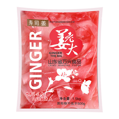 山東省萬興食品有限公司主打產(chǎn)品萬興壽司姜片1.5kg。