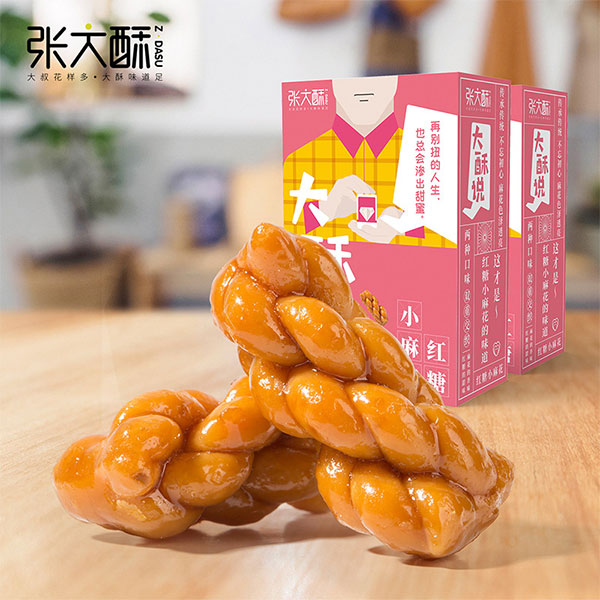 金華市張大酥食品有限公司主打產(chǎn)品張大酥紅糖小麻花128g。