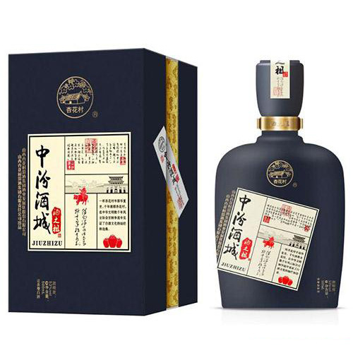 河南尊邦酒業(yè)有限公司主打產(chǎn)品中汾酒城酒之祖酒(藍)53度500ml。