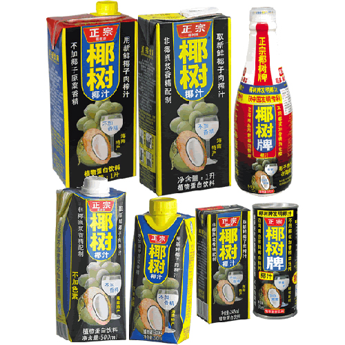 椰樹牌椰汁是以海南盛產(chǎn)的椰子為原料,28年堅持在海南島用新鮮椰子肉鮮榨,采用先進的加工技術(shù)及科學(xué)配方精制而成。它是一種不加香精、糖精、防腐劑不含膽固醇的天然植物蛋白飲料,其汁液均勻乳白、清醇,具有濃郁的天然椰香味,口感柔和、甜度適中、含有脂肪、蛋白質(zhì)、十七種氨基酸和鋅、鐵、鈣、錳等元素。于1991年被定為中國國宴飲料,產(chǎn)品暢銷全國,遠銷世界33個國家和地區(qū)。