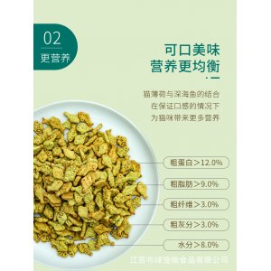 江蘇布球?qū)櫸锸称酚邢薰局鞔虍a(chǎn)品佰可心貓薄荷餅干80g罐。