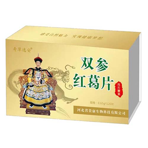 河北省貴康生物科技有限公司主打產(chǎn)品奇草逸安雙參紅葛片壓片糖果0.65gx120片。