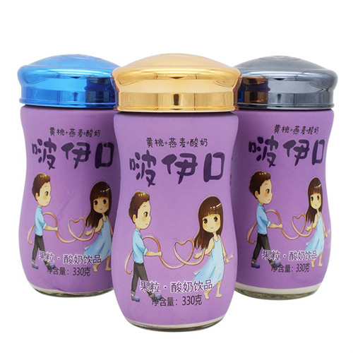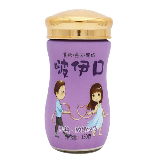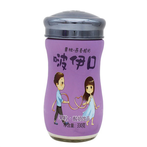 啵伊口黃桃燕麥果粒酸奶飲品330g白瓶裝