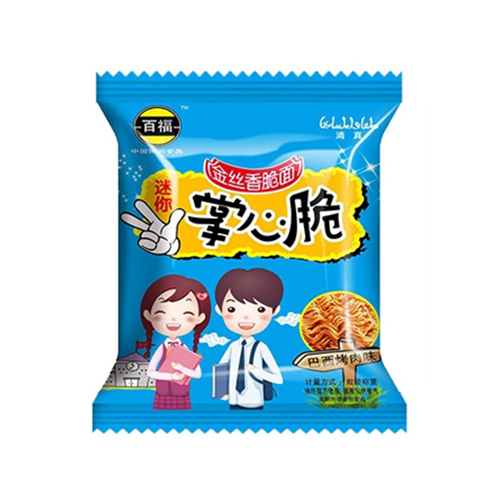 商丘市百福食品有限公司主打產(chǎn)品百福掌心脆 金絲香脆面巴西烤肉味。