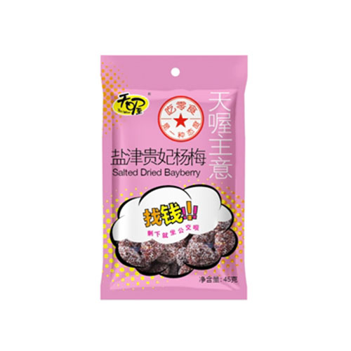 中山福禮食品有限公司主打產(chǎn)品天喔鹽津貴妃楊梅45g。