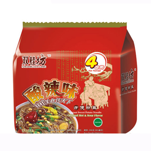 重慶福韻食品有限公司主打產(chǎn)品雙桂坊紅薯方便粉絲四連包。