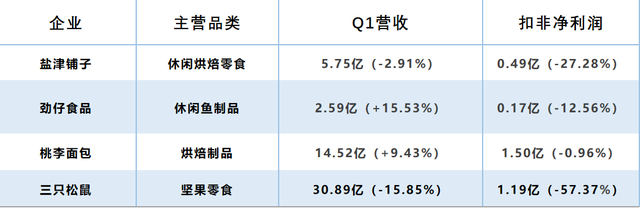 三只松鼠、鹽津鋪?zhàn)拥染揞^Q1凈利潤下滑,休閑食品今年開局有點(diǎn)難