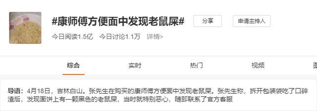 方便面中發(fā)現(xiàn)老鼠屎?康師傅再因食品安全登上熱搜