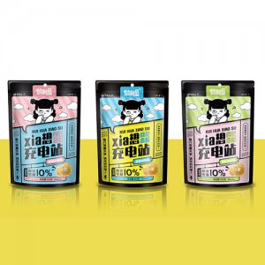 “彼利屋”傳承經(jīng)典味道,打造更符合年輕人口味喜好的噴香蝦條。包裝將海的元素融入其中,陽光沙灘海浪,年輕活力和新鮮感的視覺角度獨特新穎。色調(diào)的選擇更是相得益彰,金黃色陽光和蔚藍色海岸,黃色蝦味,藍色烤雞味,美味來源于清新“海的味道”。